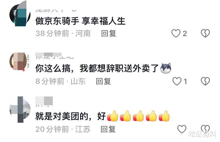 京东方面称,京东将大力推进同工同酬,要让外卖骑手达到和京东快递小哥一样的薪酬。
