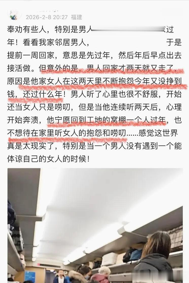 男人为什么宁可回工地,也不愿在家待着?因为工地苦的是身,家里苦的是心。