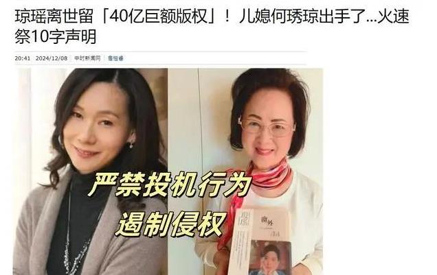 在琼瑶离世不到一周的时间里,何琇琼除了要协助丈夫处理婆婆的身后事外,还迅速展开了维权行动。