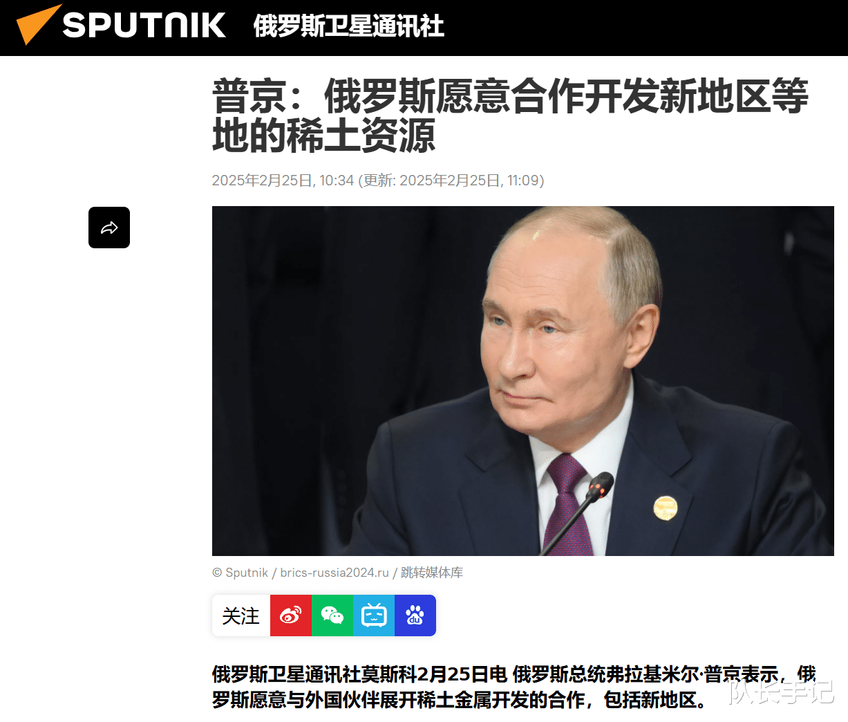2月24日,普京在稀土行业会议上,高调宣布:“俄罗斯稀土储量远超乌克兰,2030年前产量翻倍,全产业链必须打通!”更耐人寻味的是,普京特别提到“俄罗斯稀土储量多于乌克兰,愿与美国合作开发”,甚至包括顿巴斯等争议地区。