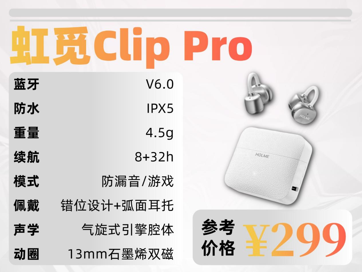 这款虹觅 Clip Pro 把轻量化佩戴做到了极致,单耳 4.5g 的重量让佩戴基本无感,丝毫没有夹耳的困扰。2.5mm 前高后低的错位设计,搭配电池仓 12 度弧面耳托,能够更好地贴合耳背,进一步强化佩戴的舒适度与贴合度。音质表现更是五百价位耳夹式耳机中的天花板,13mm 双磁喇叭通过两款高精度叠加磁铁形成强磁场,显著提升音质与音量;气旋式引擎腔体技术加持的圆柱形铝合金金属腔体,可承载更多气流量以增强声音推力,迸发澎湃重低音。石墨烯科技振膜的高形变特性,结合虹觅声学实验室的专业调音,让音质稳定无失真,细节表现更丰富。更贴心的是自研防漏音模式,反相声波能大幅降低漏音,图书馆、宿舍等安静场景使用也毫无压力,整体配置拉满。