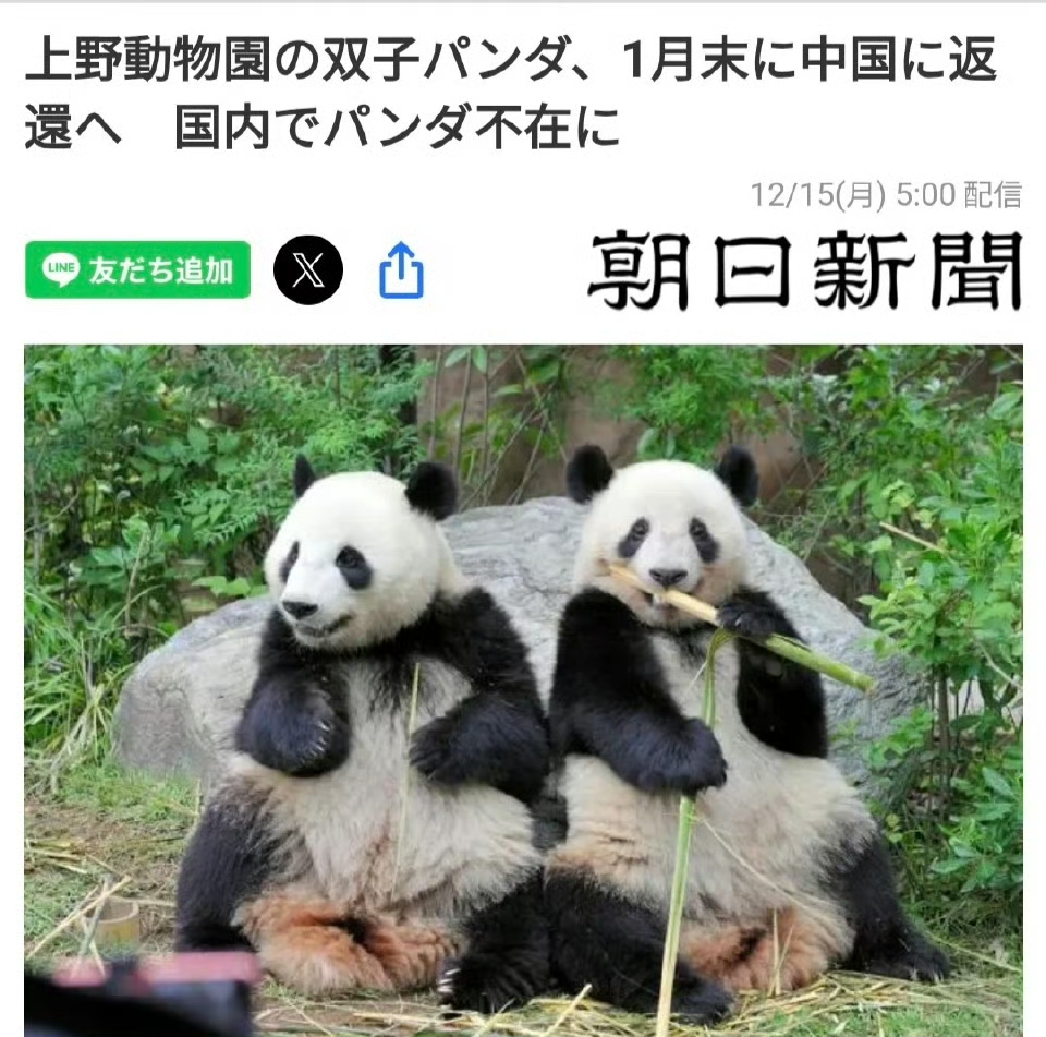 事情是这样的,日本境内现有两只大熊猫“晓晓”和“蕾蕾”,按照租借协议,它们将于2026年1月回到中国。