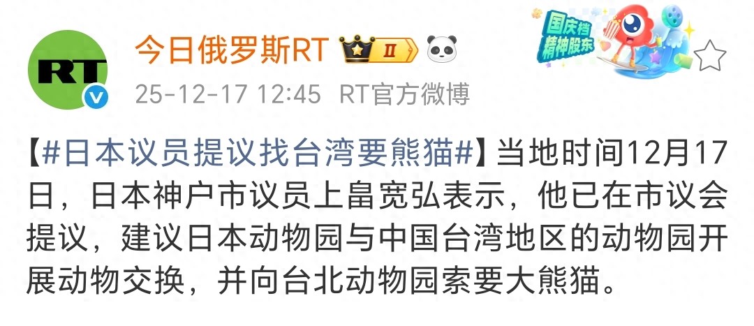 就在大家以为事情板上钉钉的时候,日本议员上畠宽弘跳出来发声,他竟然想用日本的动物和台湾省的熊猫进行交换,他还表示交换熊猫并不违反《华盛顿公约》。