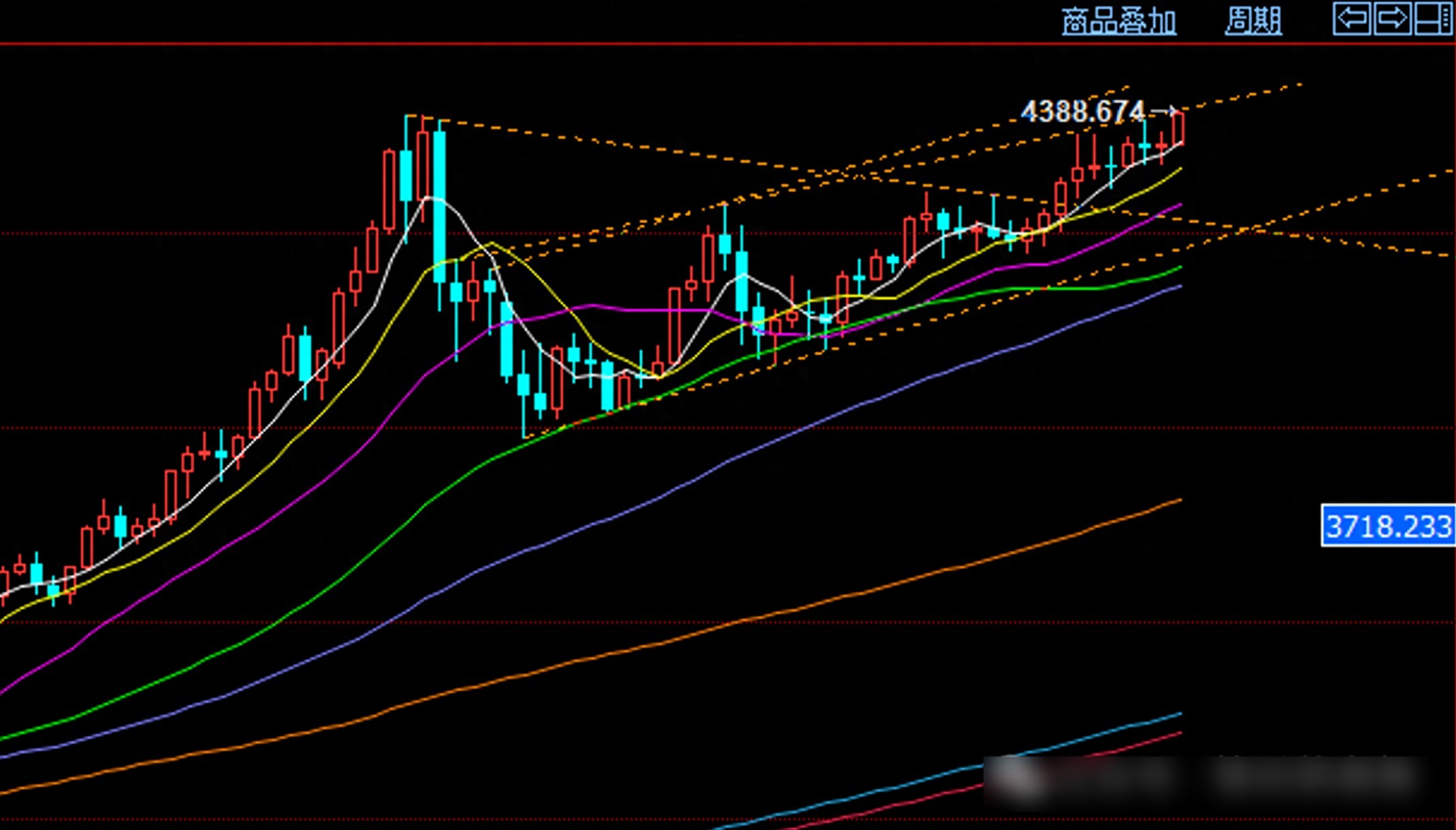 日内低点也就是5日线4340区域构成重点支撑,这里坚守保持多头看涨;向下破位4340区域行情空头偏强,然后进一步关注中期支撑4300~10美元区域,这里是多头中期生命线;在生命线之上,多头趋势不变,只有下破最近强调的多头生命线4300~4310区域,才会空头主动,行情才能多转空。