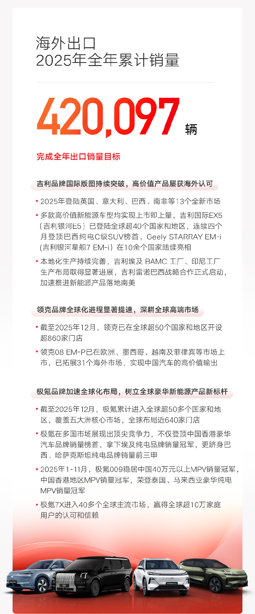 荣耀收官!吉利汽车2025年全年累计销量超302万辆