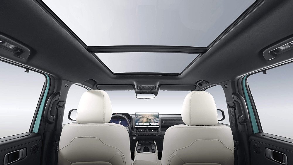 中控台下方配备50瓦手机无线快充面板,还可通过语音控制开闭的全景天窗,提升使用便利性和科技体验。
