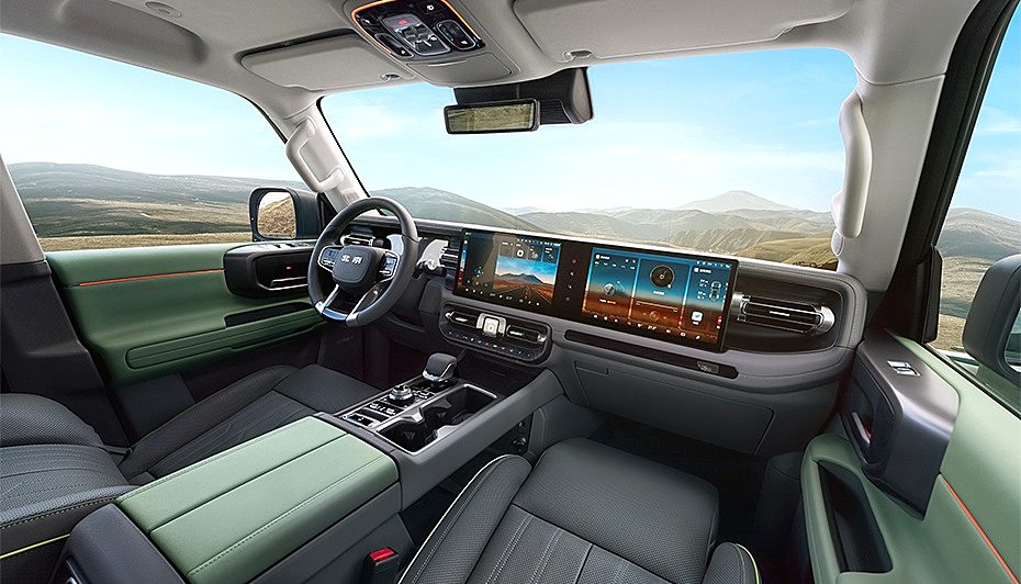 同时,BJ40增程版配备了包括10.25英寸液晶仪表盘、12.8英寸中控触摸屏和12.8英寸副驾娱乐屏。