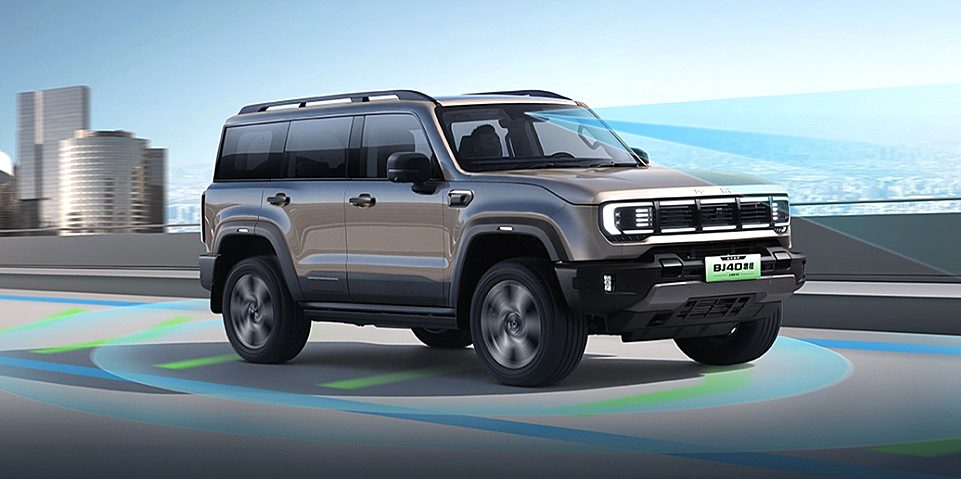 BJ40增程2025款进阶版搭载了超级智驾系统3.0,硬件配置包括12个超声波雷达、5个毫米波雷达和5个摄像头。