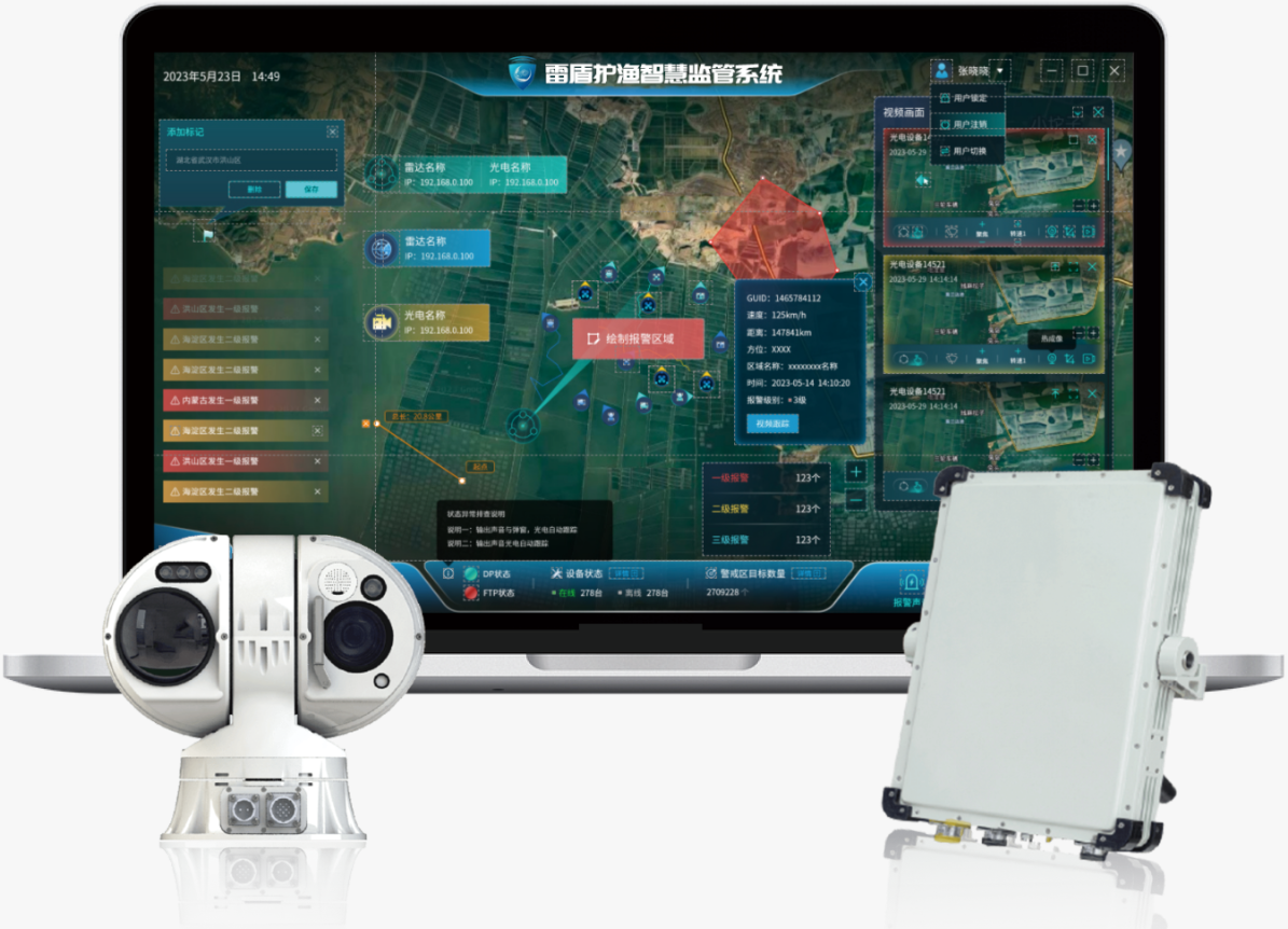 雷可达“雷盾护渔系统”首创以事件管理为中心的业务功能包含:目标探测、联动跟踪、抓拍取证、智能预警、事件回溯等功能,前端设备接入由我司设备库认证的高分辨率安防雷达和主流先进的PTZ光电等设备与智能管控平台的高效联动,构建起全方位的海洋安防体系。