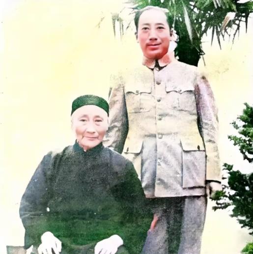 戴笠和母亲蓝月喜的合影,拍摄 是时间是1945年。戴笠的脾气很大,其他人都劝不住,唯有母亲蓝月喜三言两句,戴笠便转怒为喜。戴笠6岁时,父亲戴士富去世,蓝月喜独自抚养他和弟弟长大,为他张罗结婚,对此戴笠内心愧对母亲,所以他对母亲比较孝顺。
