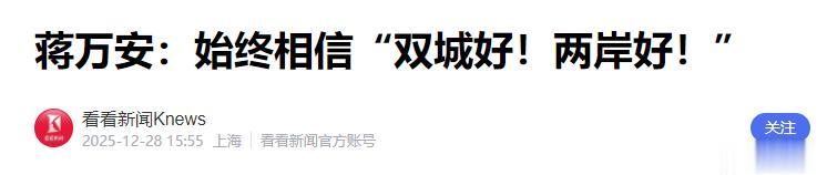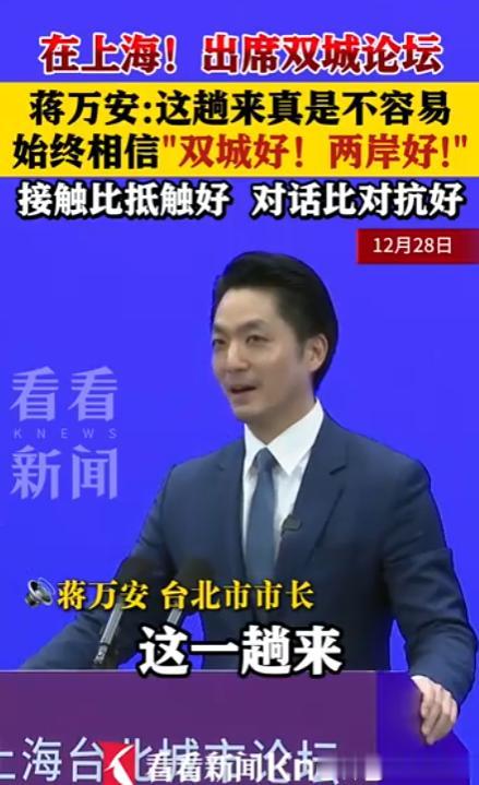 12月28日前后短短24小时里发生的一切,把这种“冰火两重天”演绎得淋漓尽致,一边,是蒋万安几乎以“闪电战”的方式飞赴上海,拼命想把两岸交流这点微弱火种保留下来。