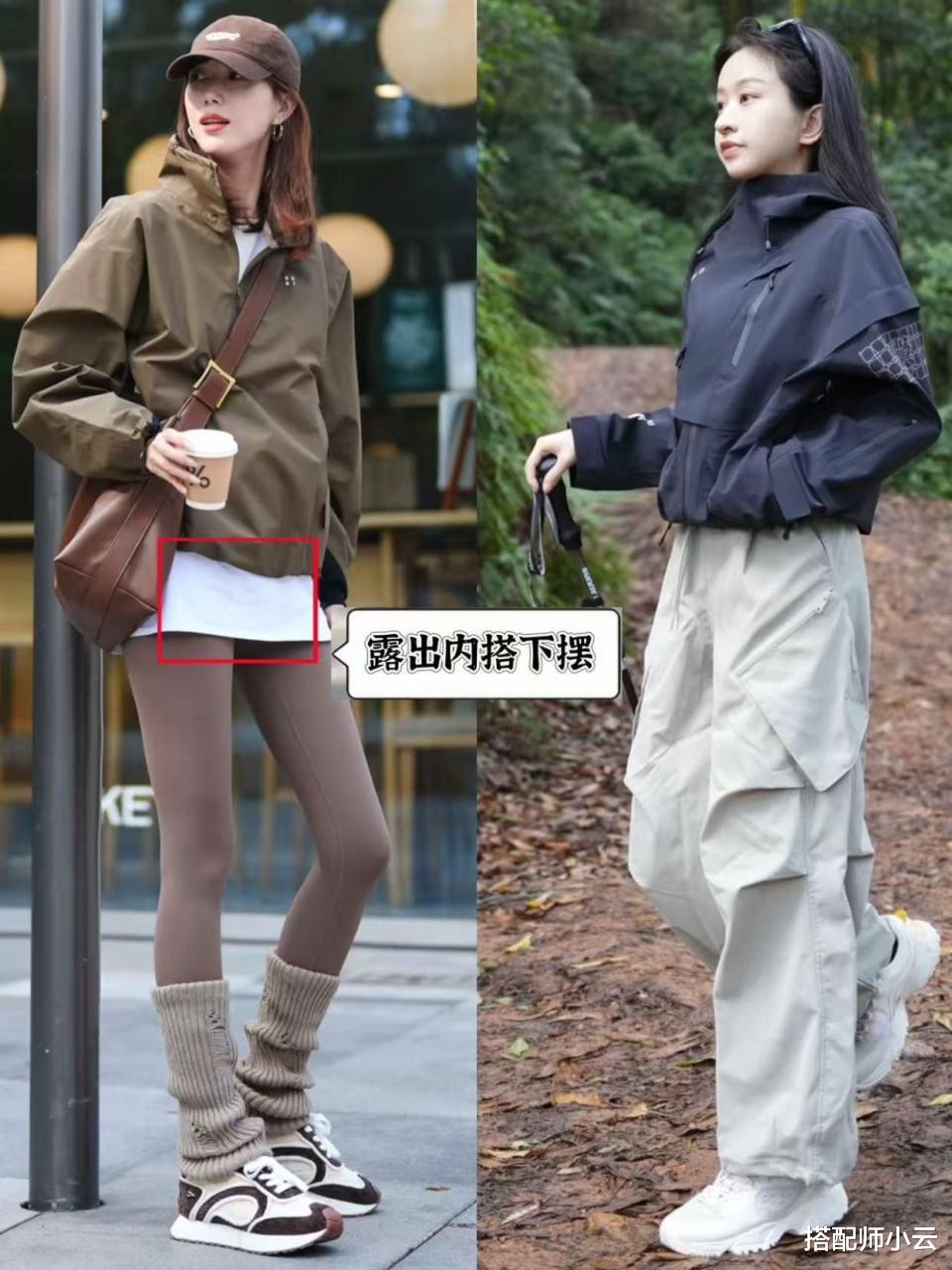 第三章:“始祖鸟、李宁”冲锋衣穿搭法则,跟着上海女生这样学法则①内长外短叠穿,有层次更时髦