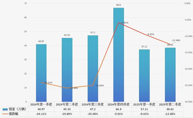 事实上,自从去年底开始“番禺行动”以来,广汽集团的市场表现已有好转:在2024年Q4年底冲量之后,2025年Q1的销量也有37.11万辆,同比下滑9.42%,虽然还是下滑,但是比起2024年前三季度动辄百分之二三十的降速,跌幅已经大幅收窄。