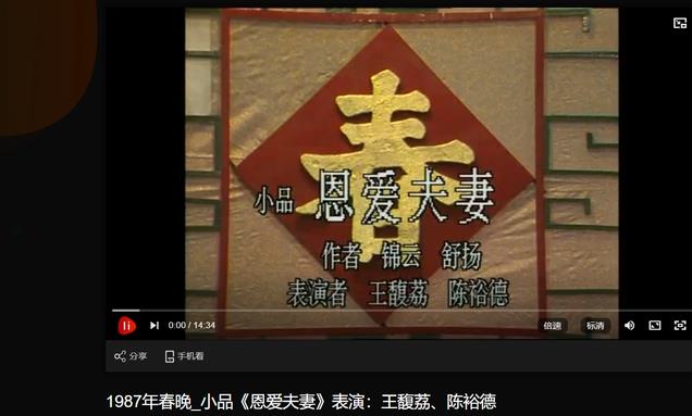 1987年陈裕德和王馥荔携手亮相春晚,给大家带来了小品《恩爱夫妻》。