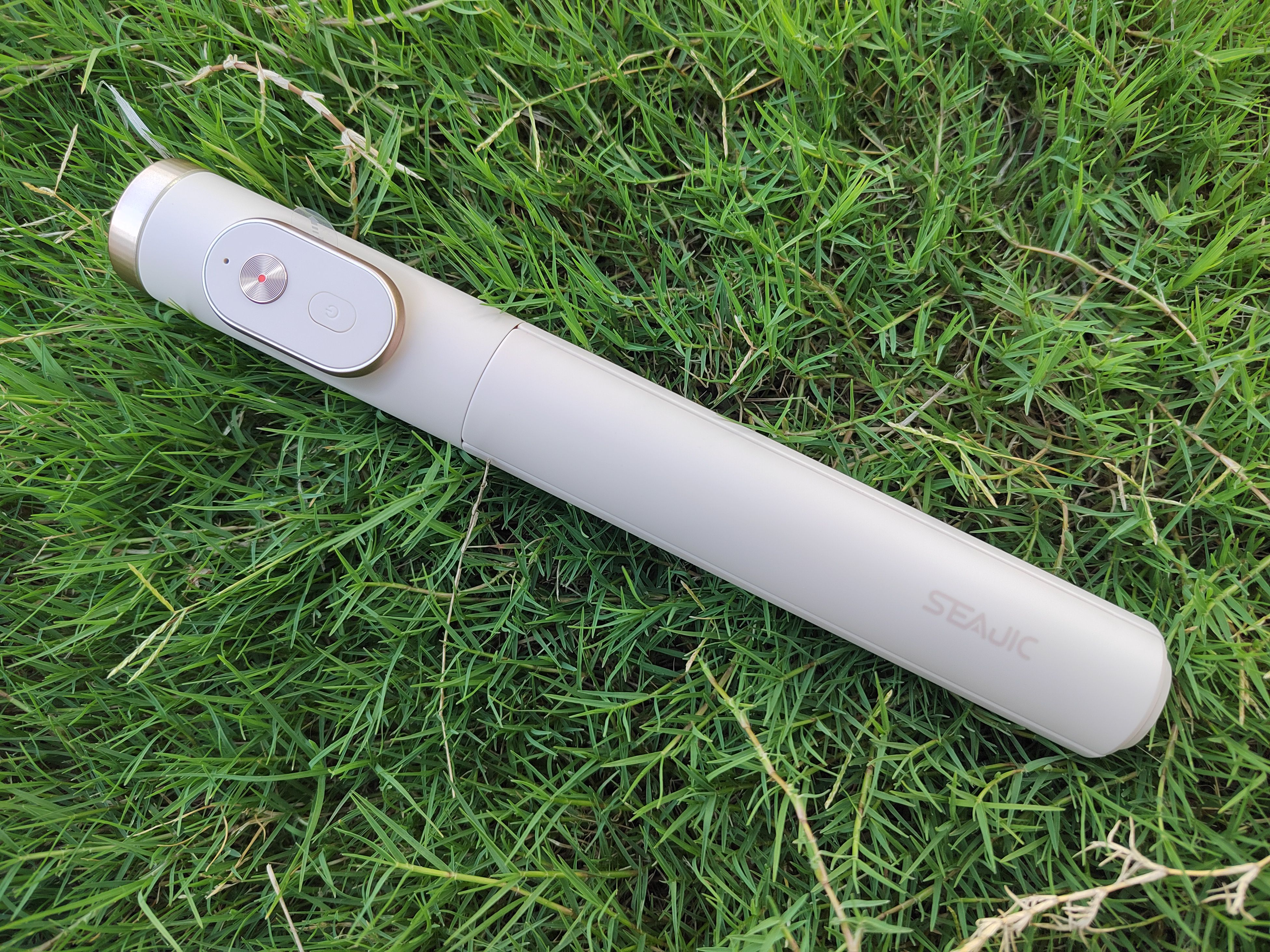 SEAJIC二级开迷你自拍杆采用了蓝牙的连接方式,相比较有线连接而言,更加方便快捷,蓝牙遥控和自拍杆紧密设计在一起,根据使用场景需求可以拆卸下来独立作为遥控使用,遥控采用了纽扣电池供电。