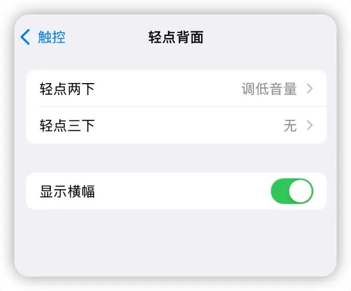 本次苹果还在辅助功能「轻点背面」中,新增了「显示横幅」功能。开启这个功能后,轻点背部操作就将伴随横幅弹窗。