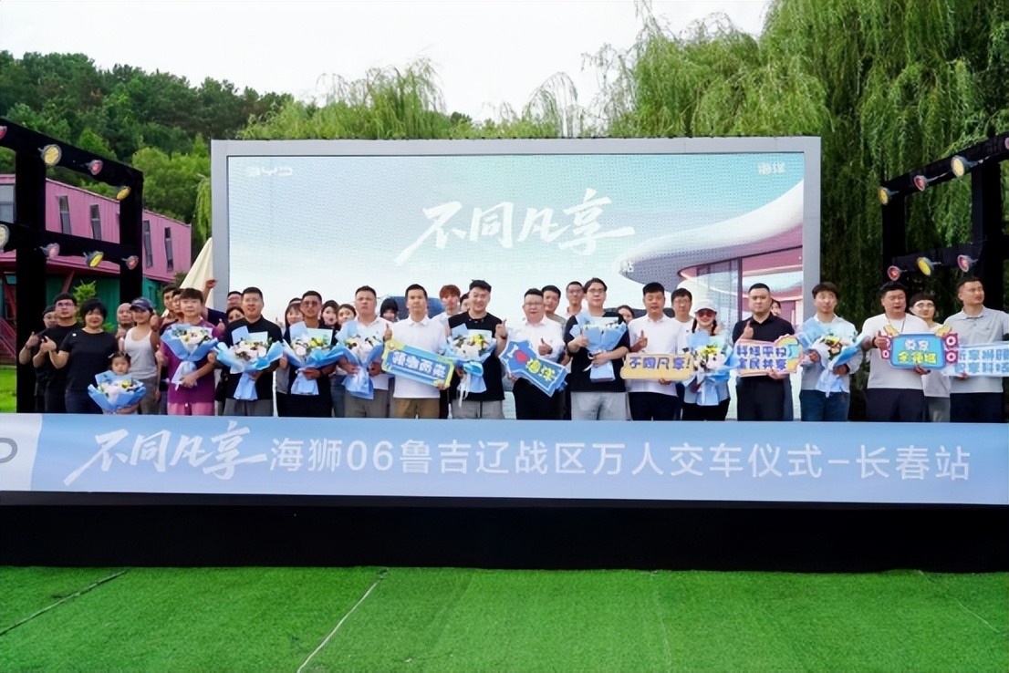 2025 年 8 月 23 日,初秋时节的长春暖意融融,“不同凡享 海狮 06 鲁吉辽战区万人交车仪式 — 长春站” 在长春慢山里营地盛大启幕。活动现场人声鼎沸、氛围热烈,比亚迪车主、主流媒体代表、比亚迪区域领导、各店总及黑吉大区负责人及伟东齐聚一堂,共同见证海狮 06 上市后又一里程碑时刻,也为春城新能源出行市场注入新活力。