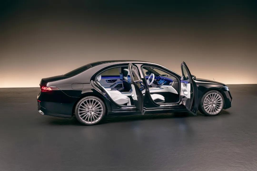前大灯和尾灯都是全新设计,尾灯明显借鉴了E级的设计,每个尾灯中有三颗星;而全新设计的前大灯则与尾灯呼应,采用了双星造型。同时,依托MB.OS架构,前大灯的功能更加丰富,不仅有长达600米的照射距离,具备弯道照明和局部远光功能,还新增低温预警投影功能,可在路面投射雪花标识,为驾驶者提供警示。