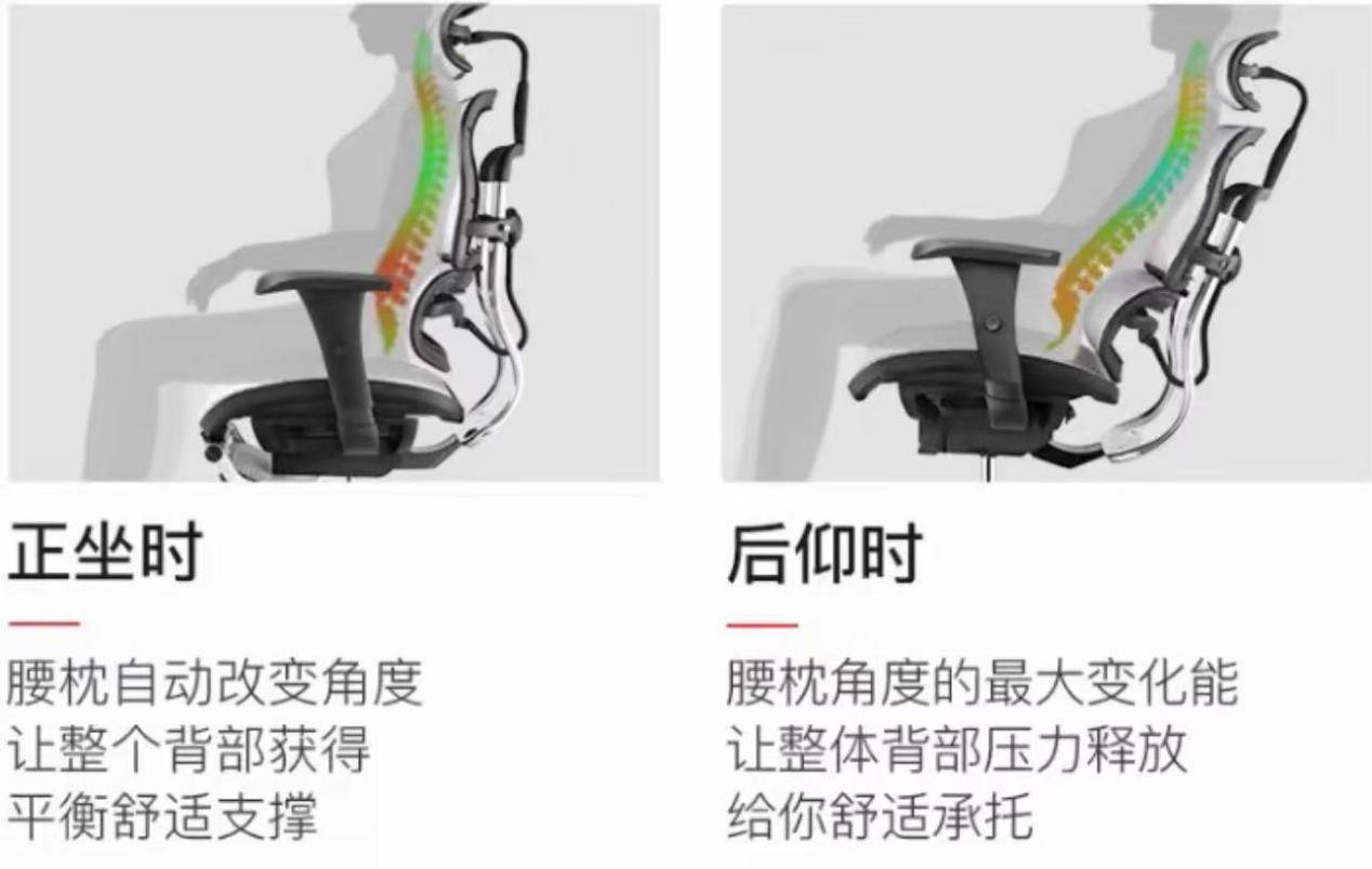它的核心优势在于“动态追腰”结构。当你从正坐转为后仰时,椅背上的腰靠能沿着内部滑轨同步跟随移动,始终贴合腰部,有效减少了后仰时腰部悬空的不适感,这种设计对需要长时间保持坐姿的用户非常实用。