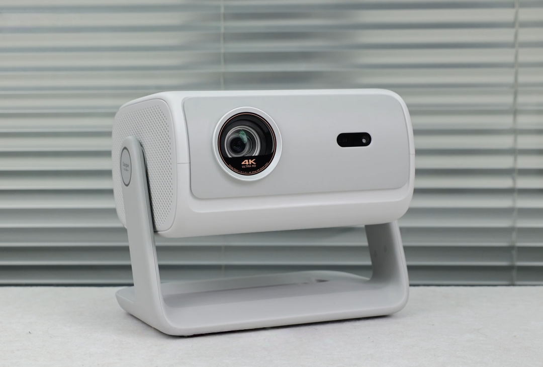 145°一体式云台更是懒人福音。以前投天花板得垫几本书调角度,画面还总歪。现在把机器放床头柜,单手掰一下云台,画面就稳稳投在天花板正中央,侧躺撸猫追《喜人》,脖子再也不用僵成“僵尸”。自动对焦和自动校正也很灵活,哪怕机器放得稍偏,AI自动校正也能瞬间把画面调正,老人孩子都能上手。