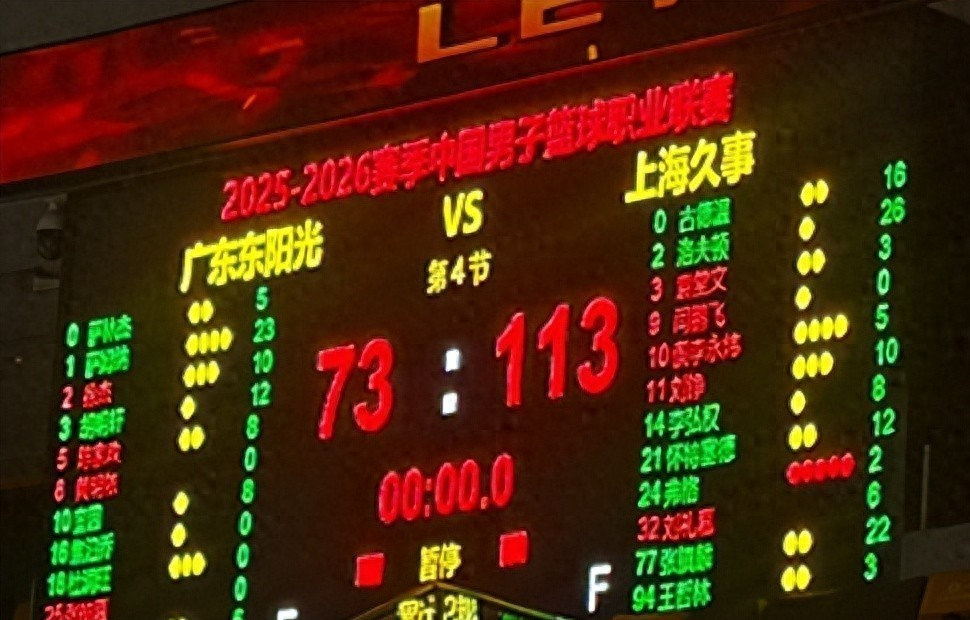 本以为是一场势均力敌的比赛,想不到广东队在主场惨遭上海男篮“杀戮”,四节战罢广东队以73-113输掉40分!