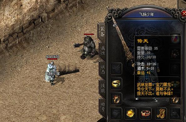 2009 年史诗登场!三职业通吃的属性天花板,法师也能轻松扛!在传奇的 2009 年,倚天剑的横空出世堪称 “核弹级” 事件 —— 它不是简单的新装备,而是直接把神装的门槛拉到了新高度!属性有多顶?攻击 30-60、魔法 28 点、道术 27 点,战士拿它砍人如切菜,法师用它增幅魔法,道士带它强化辅助,三职业全适配,再也不用为 “职业专属” 纠结!更贴心的是,它重量才 26 点,连负重堪忧的法师都能轻松驾驭,不用牺牲药水格子,当年一曝光就炸翻玛法,全服玩家都疯了似的想拥有!