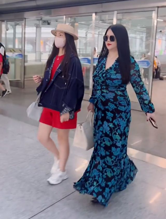 正好,李湘母女也刚刚结束日本旅行,悠哉游哉地回国。7月22日,她们现身北京机场,一前一后走出来,被很多网友偶遇。