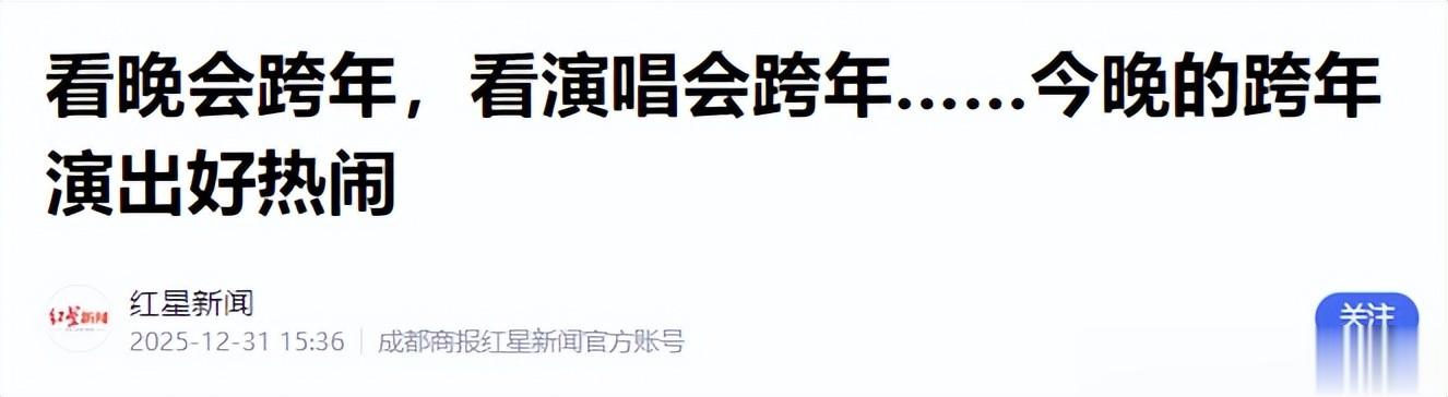 从前大家看跨年,看的是有没有喜欢的明星,如今则更看重有没有能打动我的内容。跨年晚会的本质,是一场跨越时空的情感联结,2026的收视榜单早已给出答案。