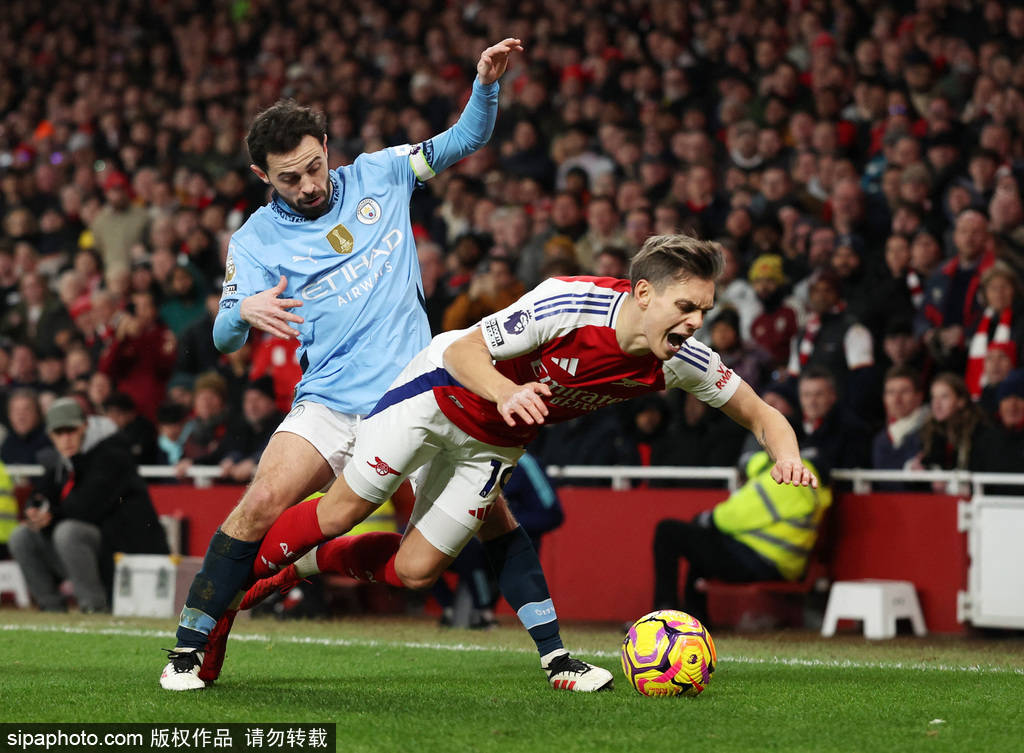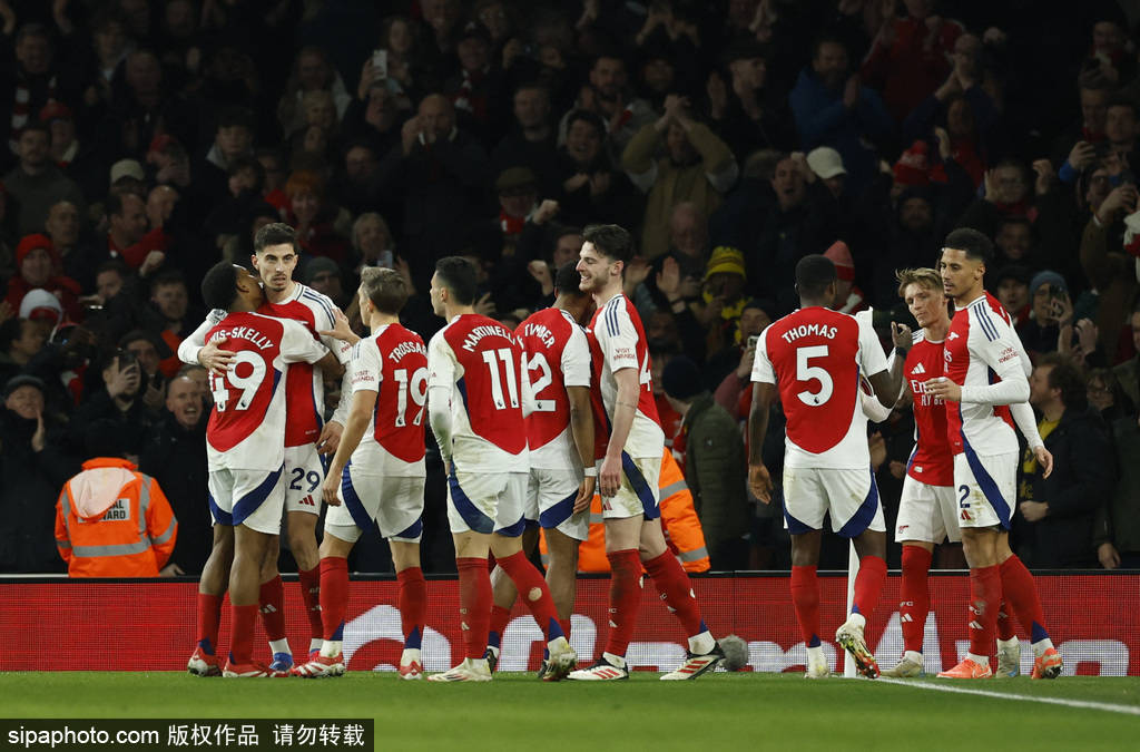 北京时间2月3日凌晨0:30,2024-25赛季英超联赛第24轮,阿森纳在主场迎战曼城。上半场比赛,阿森纳由厄德高闪击得手,随后马丁内利越位进球无效,哈弗茨失单刀,半场结束阿森纳暂时1-0曼城;下半场,哈兰德为曼城扳平比分,然而托马斯1分钟内迅速还以颜色,随后斯凯利、哈弗茨破门帮助阿森纳锁定胜局,终场结束前恩瓦内里将比分改写为5-1,最终阿森纳在主场5-1曼城,距离榜首的利物浦仍有6分差距。
