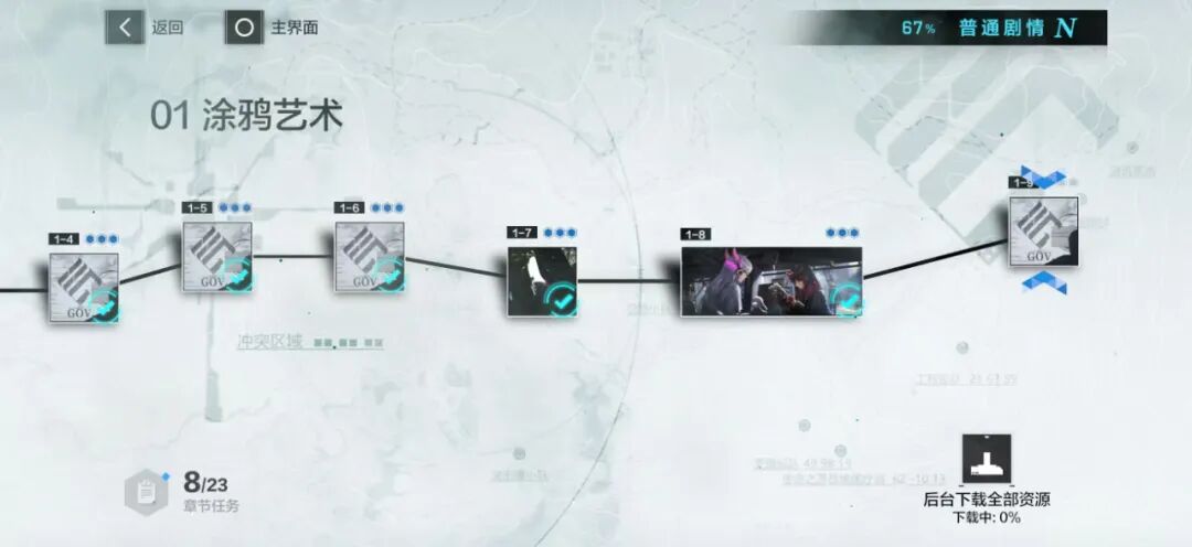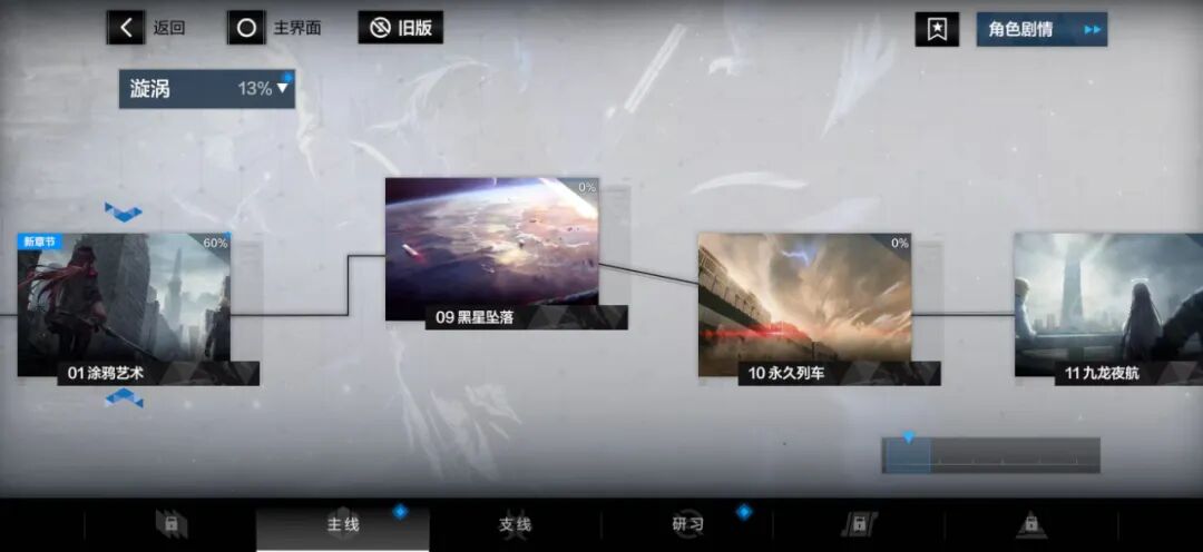 早期剧情不易读、剧情较为冗长门槛太高、剧情进度与玩法绑定的问题都在六周年版本得到了解决。新版本中,玩家通关主线涂鸦艺术篇后,就可以解锁所有主线和浮点纪实剧情,还能观看到旧日作战记录短片,可以根据自己的偏好选择快速浏览剧情或者快速体验玩法。