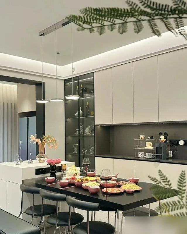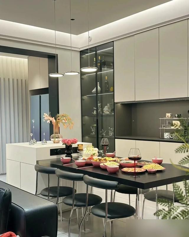 餐厨区塞个中岛简直回血神器:左边嵌电磁炉煮火锅右边当吧台泡咖啡;抽屉里刀叉勺分区站岗台面永远空。
