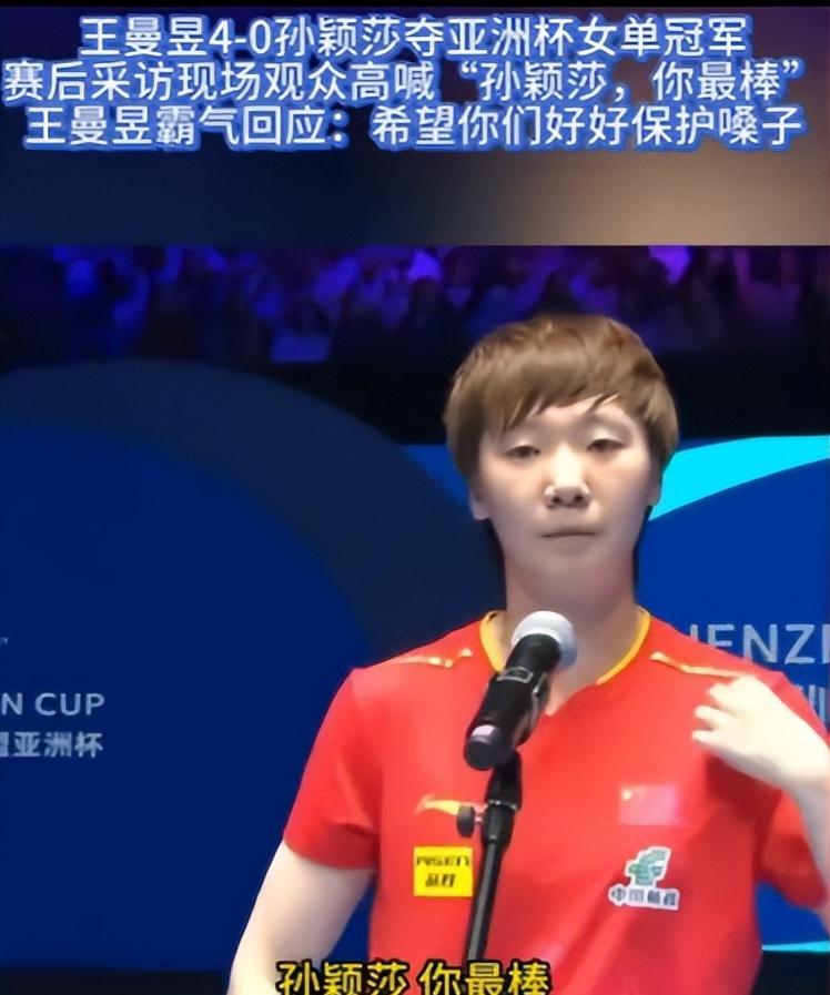 王曼昱当时的反应倒是挺有意思的,她直接对主持人说希望现场的球迷们能保护好自己的嗓子。这话说得既幽默又得体,既没有表现出不满,又巧妙地化解了尴尬。不过她这番话一出,立马就上了各大平台的热搜,引发了不小的讨论。有人说她这是在回怼那些不懂事的球迷,也有人说她这是在展现自己的大度。反正是众说纷纭,搞得我都不知道该怎么评价了。
