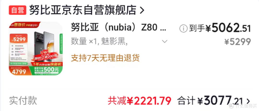 然后说说手机吧,没蹲到啥好价,自己稍微操作一下,便宜一点点,全款拿下努比亚的z80ultra,使用了e卡和国家补贴。