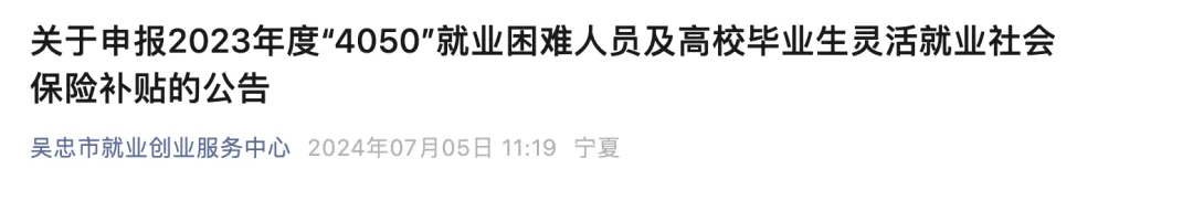 2、宁夏吴忠:2024年7月5日起开始申报社保补贴