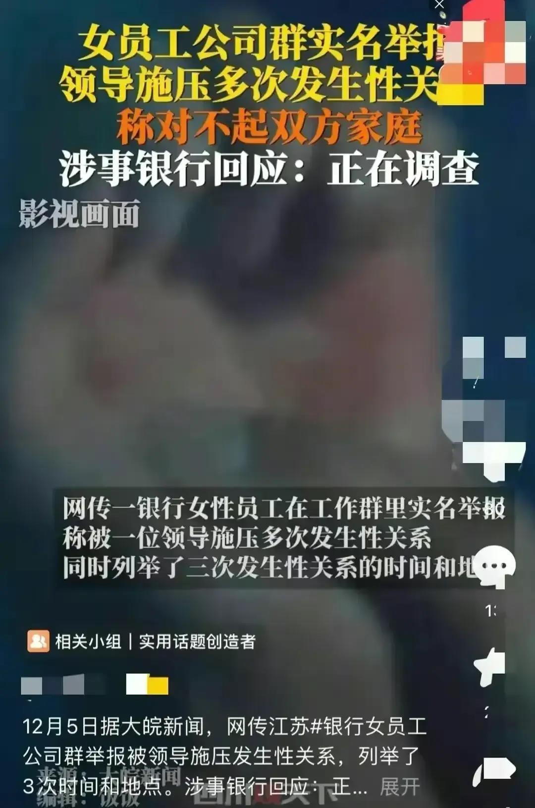 就在今天,江苏某银行员工徐某实名举报她的领导马某,利用职务之便,对她进行施压,强迫自己与其发生关系。