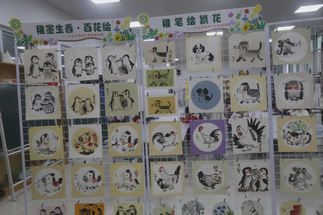 伴着清脆的下课铃声,来宾们一同漫步校园。此时正值信阳市羊山外国语小学读书活动成果展举办期间,走廊墙面、校园展板上,都挂满了孩子们亲手制作的阅读手抄报、读书笔记与特色书签。