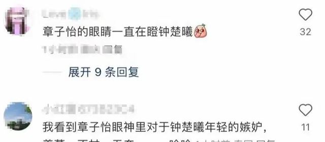 有网友调侃说,章子怡是在羡慕钟楚曦的年轻与朝气。