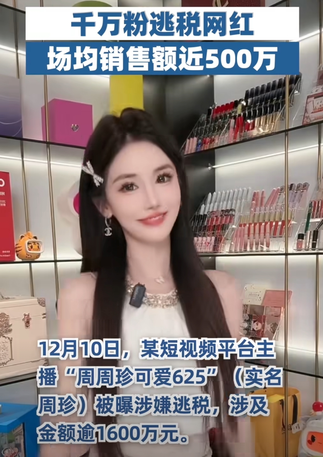 事情的起因是有网友直接向媒体爆料,称某短视频平台坐拥超5000万粉丝的大主播“周周珍可爱625”名下公司涉嫌逃税被查了。