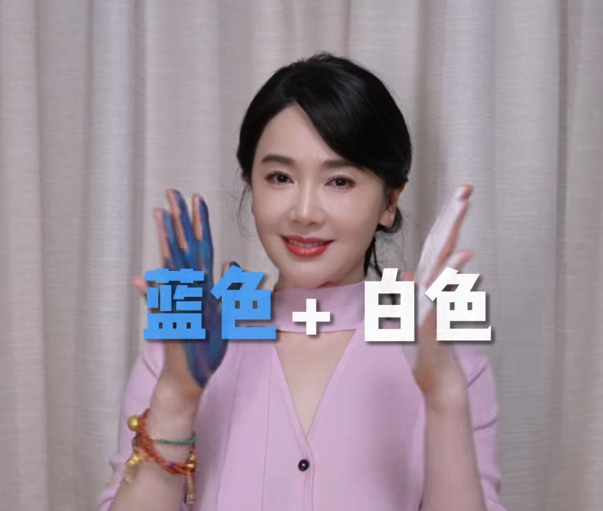 2月3号的时候,她在自己的短视频账号分享了一个手搓颜料变装的视频,开始时她穿的是浅紫色的针织衫,
