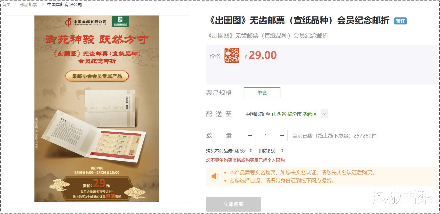 这次《出圉图》预订虽然没有完全放开,但“中华全国集邮联合会会员”这个身份,并没有多高的门槛,一些省市缴纳10元会费就能成为会员,部分省份甚至连会费都不用缴,申请后不到一天就能成为会员。