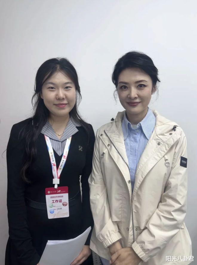 在后台与工作人员合影,周涛素颜出镜,一点也看不出56岁的年龄,看着不到40岁呀,比一些30多岁的女性还显年轻,皮肤细腻光滑,穿搭朴素难掩天生丽质。