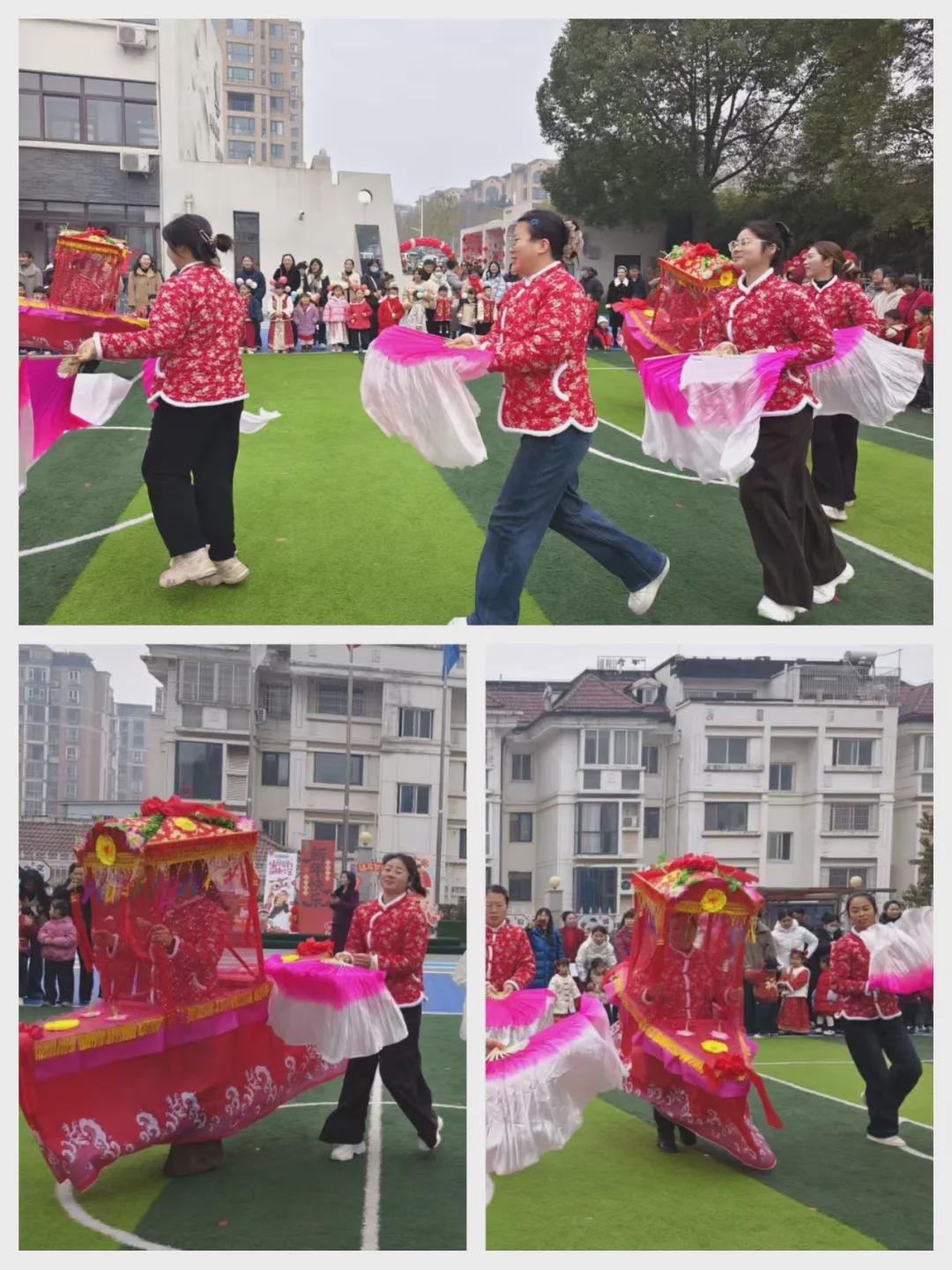 动感十足的热身律动率先点燃现场气氛,孩子们伴着悦耳的音乐尽情摇摆,每一个动作都充满朝气与欢喜,在舒展肢体中积攒快乐,为活动注入满满活力。随后,老师们化身“龙舞者”,身着喜庆服饰舞动祥龙,彩龙翻飞腾转,将传统民俗的热闹氛围拉满,为孩子们带来一场精彩的视觉盛宴,寓意新岁吉祥顺遂。紧接着,老师们驾着精致花船踏歌而来,步履轻快、身姿灵动,用独特的仪式感为孩子们送上新年祝福,点亮元旦欢喜。