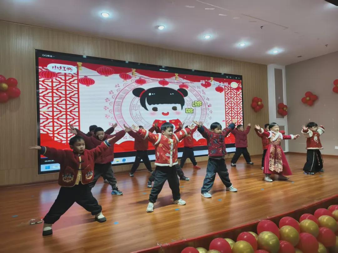 文艺表演环节同样亮点纷呈。一群身着红色新年服饰的小萌娃们手持红灯笼登上舞台,脸上洋溢着灿烂笑容,用稚嫩却充满活力的舞步,将新年的喜庆气氛瞬间点燃。孩子们时而围成圆圈、时而排成队列,每一个动作都充满童趣,赢得现场阵阵掌声。