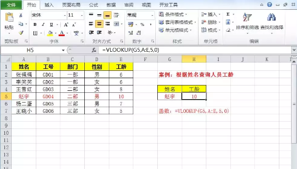 函数公式:=VLOOKUP(G5,A:E,5,0)