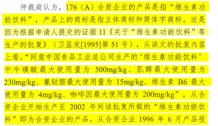 根据该仲裁裁决的认定,中国的红牛饮料商标并非是泰国天丝的红牛商标在中国市场的简单延续,而是泰国红牛商标、斗牛商标、多种商标元素的集合所产生的一个全新的商标,是中国红牛中的中方股东利用其身份优势和政策优势、的成果。