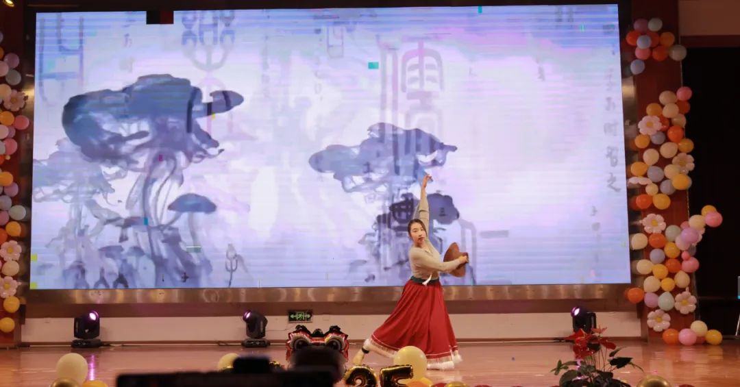 23 (4)班的同学们表演的舞蹈节目《桃花朵朵开》,如同春日里盛开的桃花在舞台上翩翩起舞。轻盈的舞步、灵动的身姿,完美地诠释了青春的活力与烂漫,瞬间点燃了现场的气氛。