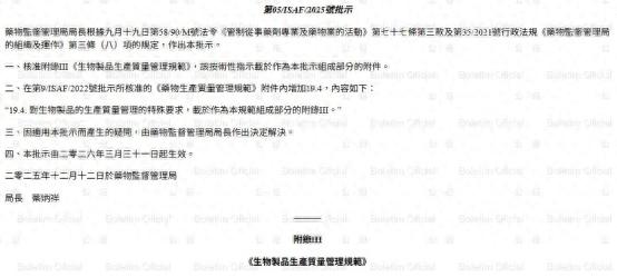 图为《生物制品生产质量管理规范》技术性指示。(澳门药监局供图)
