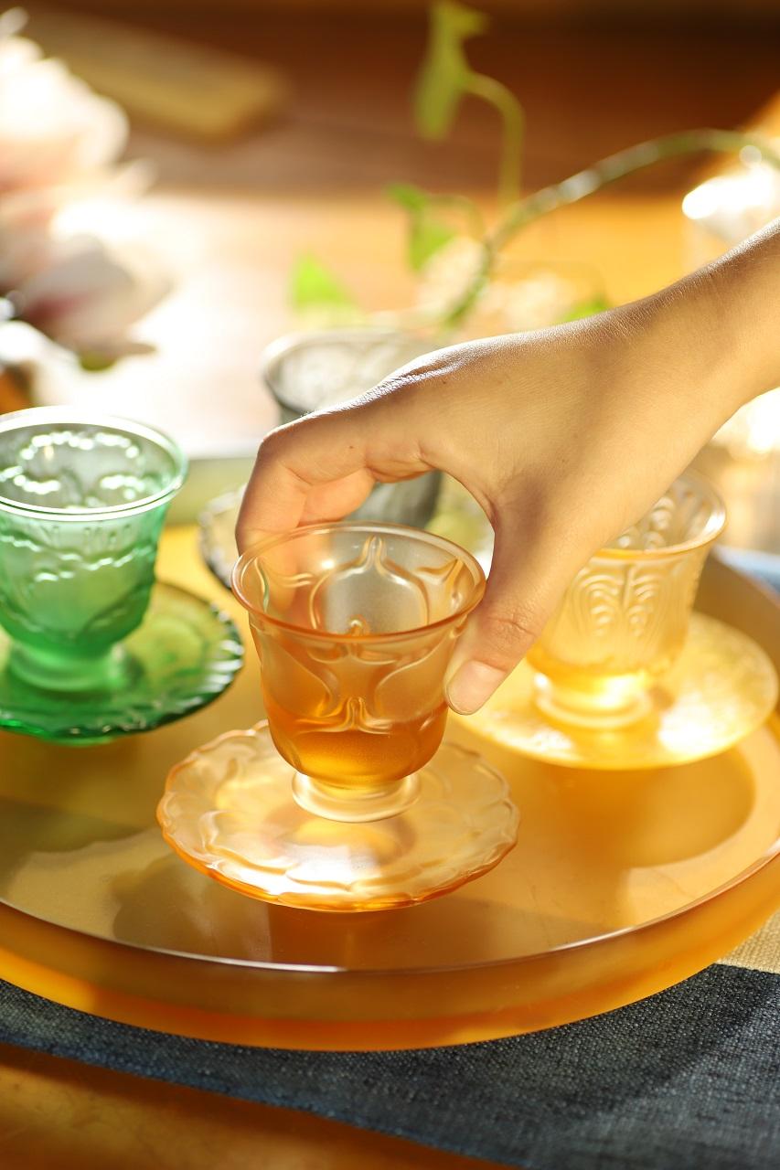 直到后来,无数匠人们历经艰难,四处拜师学艺,才逐渐让古法琉璃工艺重见天日。而今天的主角 —— 古法琉璃四季矮脚杯,正是在这千年技艺传承的基础上诞生的。