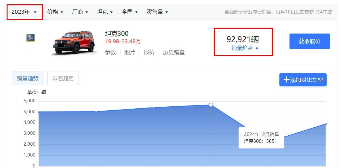 现在,我们再来分析一下那“150万辆”的销量目标。长城汽车的底气,一部分来自坦克300前几年的辉煌成绩。但是,要将这种辉煌延续15年,年均销量要保持在10万辆以上。这可不是一件容易的事情。