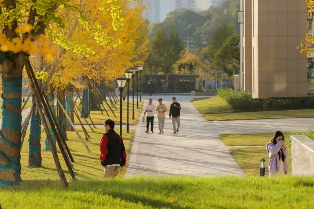 秋风渐起,校园便换上了金黄的盛装。道路两旁的银杏树褪去翠绿,染上耀眼的金黄,扇形的叶片在秋风中轻轻摇曳,风过处,金黄的银杏叶漫天飞舞,铺成一条金灿灿的大道。阳光透过金黄的枝叶,温柔地洒在身上,和朋友并肩走在银杏道上,踩在厚厚的落叶上,发出“沙沙”的声响,随手拾起一片银杏叶夹在书里,便把秋日的浪漫定格成永恒。